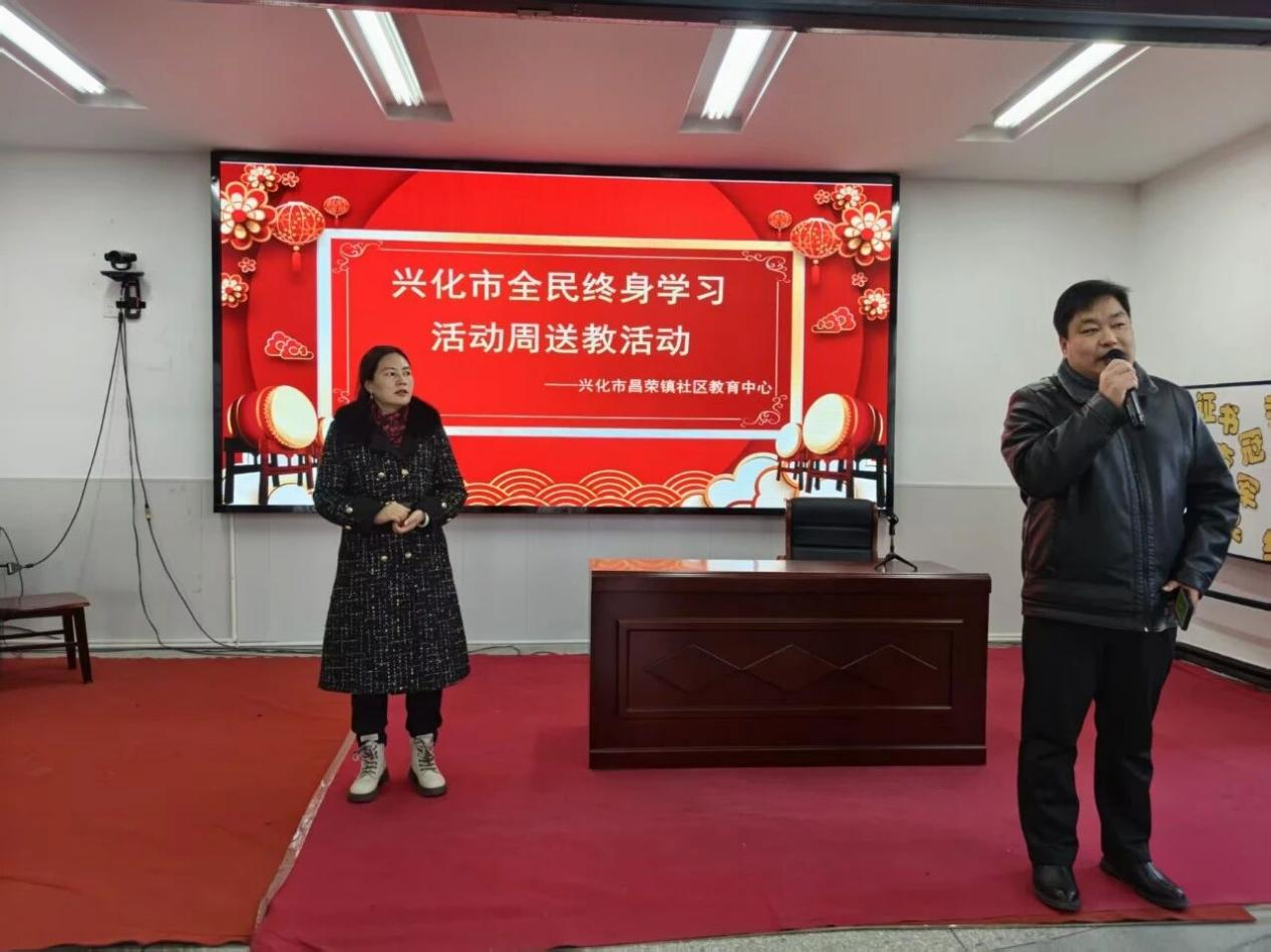 1月12日下午,兴化市全民终身学习活动周送教活动在兴化市昌荣中心校多功能教室开展。活动由兴化中专高春丽老师和栾国杰老师做讲座,邀请了学生家长参加。周增平校长主持活动。