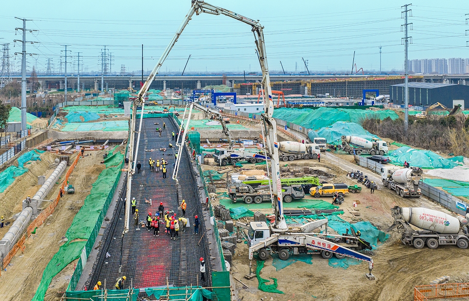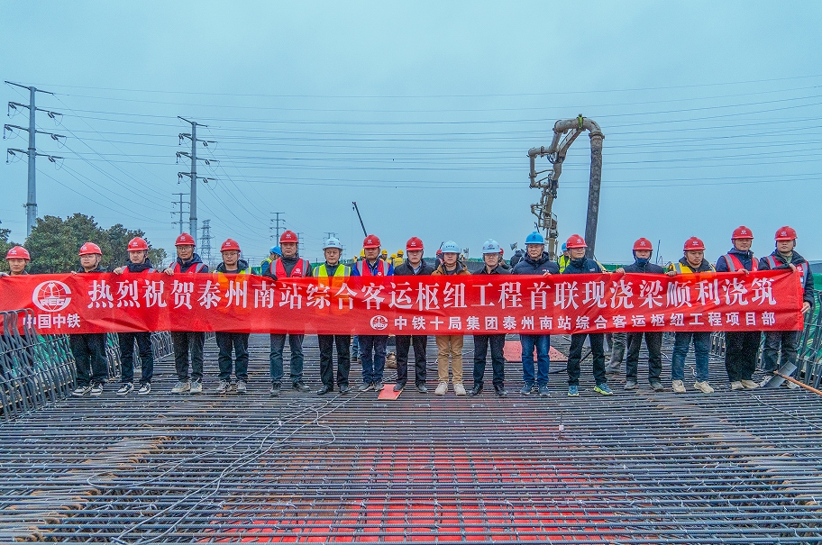 元月18日,由中铁十局集团承建的泰州高铁南站综合交通枢纽项目客运枢纽子项目泰顺路首联连续梁开始浇筑,标志着泰州高铁南站综合交通枢纽项目建设按下快进键。