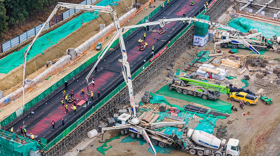 客运枢纽子项目首联连续梁位于新建泰顺路B3匝道桥第三联,该联连续梁共三跨,单跨长度为30m,总长度为90m,桥面标准宽度为9m。该联连续梁消耗钢筋约113.878吨,设计浇筑 C50混凝土约502.8立方米。综合客运枢纽子项目主体工程预计2027年6月完成。(许大才 杨丁晖 刘勇)