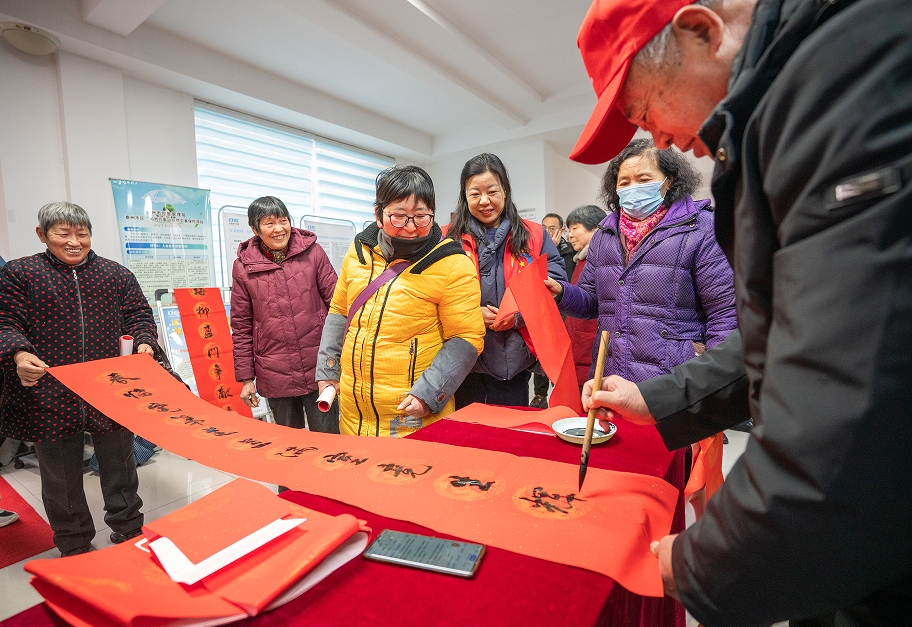 活动现场,老年书法家们铺纸挥毫,笔走龙马,为居民书写一个个饱满的“福”字和一副副寓意吉祥的春联。姜堰区自来水公司也为居民赠送了春联与“福”字,传递新春祝福。社区工作人员则将一碗碗热气腾腾、香气四溢的腊八粥递到居民手中,更添节日的温馨与关怀。