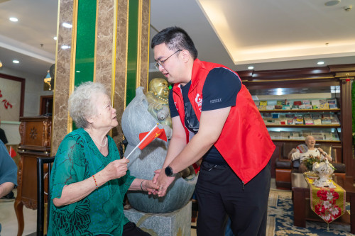 一行人一踏入养护中心,便笑着走向在场的老人们,主动伸出手与他们亲切握手致意,一句句“最近身体还好吗”“快过节了,来看望大家”的家常话,瞬间让现场氛围变得格外亲切。慰问团还为老人们精心准备了米、油等生活必需品及毛巾、湿巾等贴心物资,并真诚送上了“国庆安康、中秋团圆、身体健康”等节日祝福。